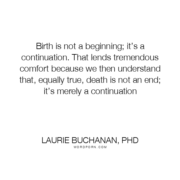 Birth is not a beginning; it’s a continuation. That lends tremendous comfort because we then understand that, equally true, death is not an end; it’s merely a continuation
