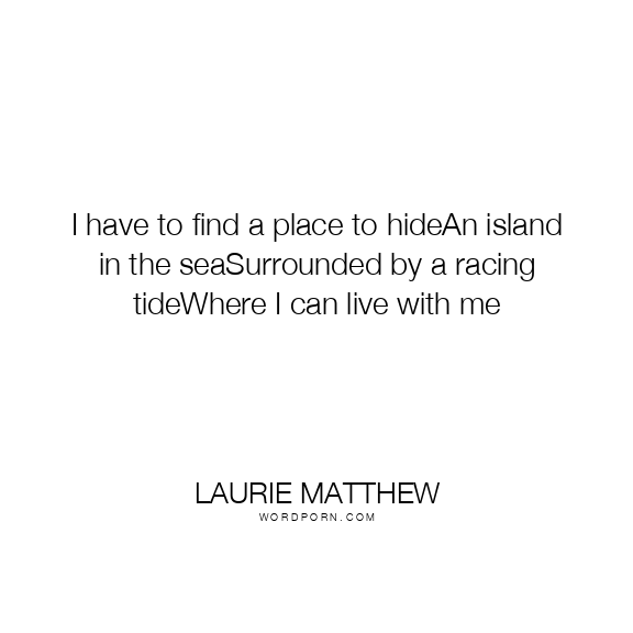 I have to find a place to hideAn island in the seaSurrounded by a racing tideWhere I can live with me