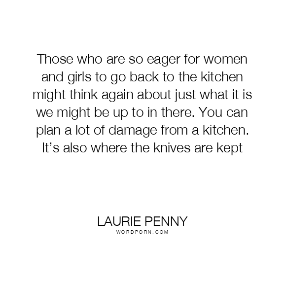 Those who are so eager for women and girls to go back to the kitchen might think again about just what it is we might be up to in there. You can plan a lot of damage from a kitchen. It’s also where the knives are kept
