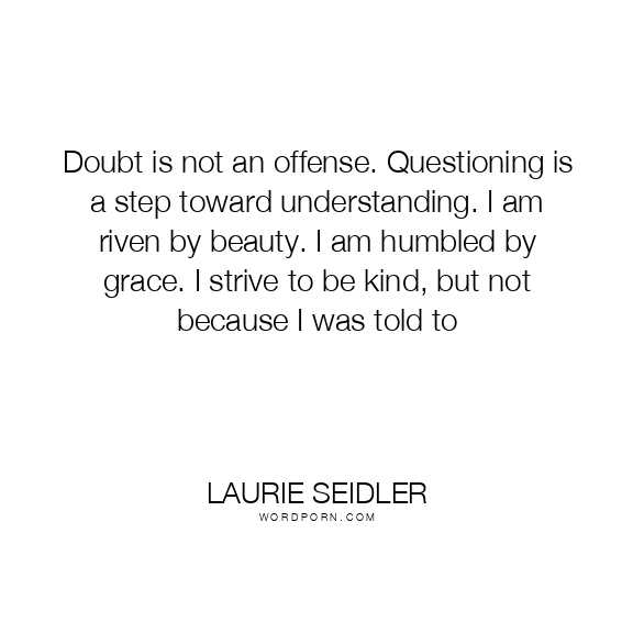 Doubt is not an offense. Questioning is a step toward understanding. I am riven by beauty. I am humbled by grace. I strive to be kind, but not because I was told to
