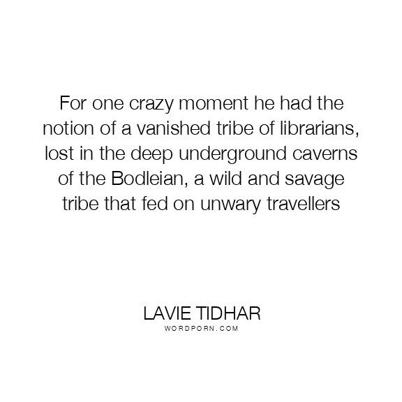 For one crazy moment he had the notion of a vanished tribe of librarians, lost in the deep underground caverns of the Bodleian, a wild and savage tribe that fed on unwary travellers
