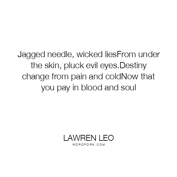 Jagged needle, wicked liesFrom under the skin, pluck evil eyes.Destiny change from pain and coldNow that you pay in blood and soul