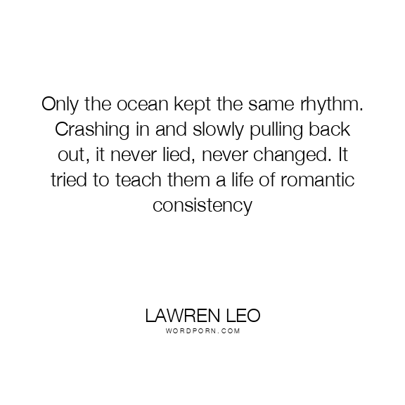 Only the ocean kept the same rhythm. Crashing in and slowly pulling back out, it never lied, never changed. It tried to teach them a life of romantic consistency