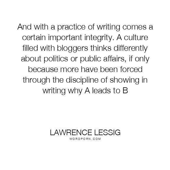And with a practice of writing comes a certain important integrity. A culture filled with bloggers thinks differently about politics or public affairs, if only because more have been forced through the discipline of showing in writing why A leads to B