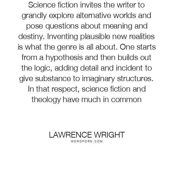 Science fiction invites the writer to grandly explore alternative worlds and pose questions about meaning and destiny. Inventing plausible new realities is what the genre is all about. One starts from a hypothesis and then builds out the logic, adding detail and incident to give substance to imaginary structures. In that respect, science fiction and theology have much in common