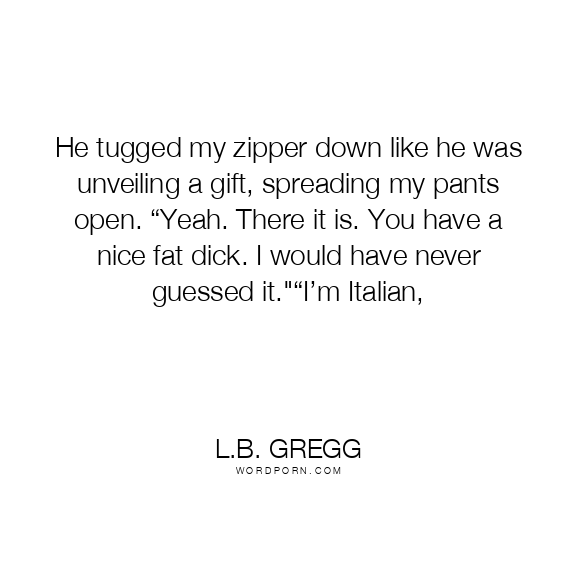 He tugged my zipper down like he was unveiling a gift, spreading my pants open. “Yeah. There it is. You have a nice fat dick. I would have never guessed it."“I’m Italian,