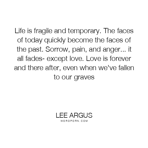 Life is fragile and temporary. The faces of today quickly become the faces of the past. Sorrow, pain, and anger... it all fades- except love. Love is forever and there after, even when we've fallen to our graves