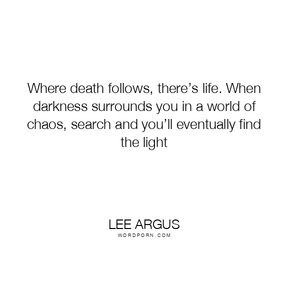Where death follows, there’s life. When darkness surrounds you in a world of chaos, search and you’ll eventually find the light