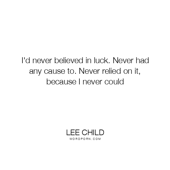 I'd never believed in luck. Never had any cause to. Never relied on it, because I never could