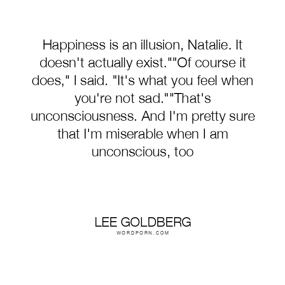 Happiness is an illusion, Natalie. It doesn't actually exist.""Of course it does," I said. "It's what you feel when you're not sad.""That's unconsciousness. And I'm pretty sure that I'm miserable when I am unconscious, too