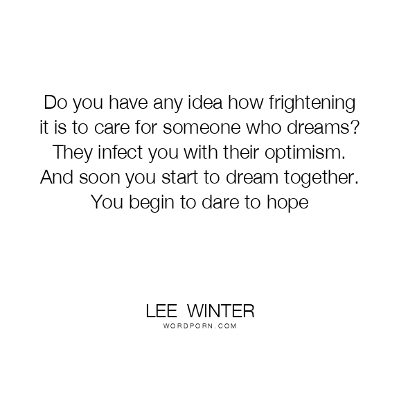 Do you have any idea how frightening it is to care for someone who dreams? They infect you with their optimism. And soon you start to dream together. You begin to dare to hope