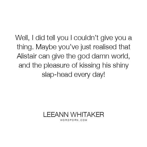 Well, I did tell you I couldn’t give you a thing. Maybe you’ve just realised that Alistair can give the god damn world, and the pleasure of kissing his shiny slap-head every day!