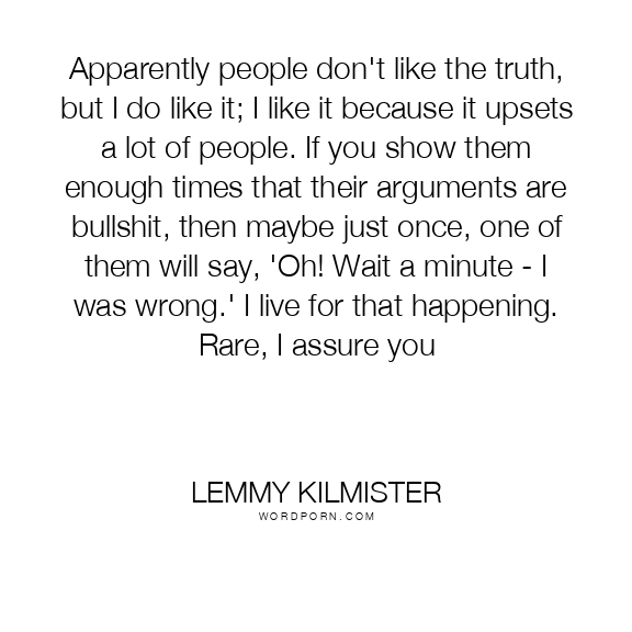 Apparently people don't like the truth, but I do like it; I like it because it upsets a lot of people. If you show them enough times that their arguments are bullshit, then maybe just once, one of them will say, 'Oh! Wait a minute - I was wrong.' I live for that happening. Rare, I assure you
