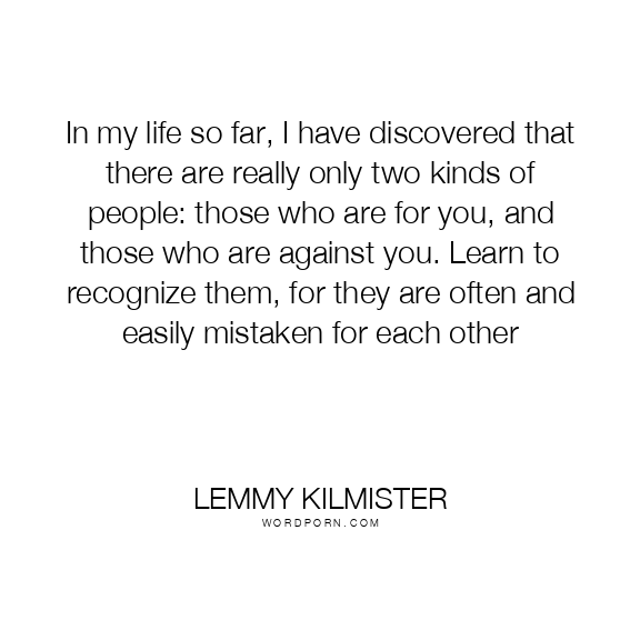 In my life so far, I have discovered that there are really only two kinds of people: those who are for you, and those who are against you. Learn to recognize them, for they are often and easily mistaken for each other