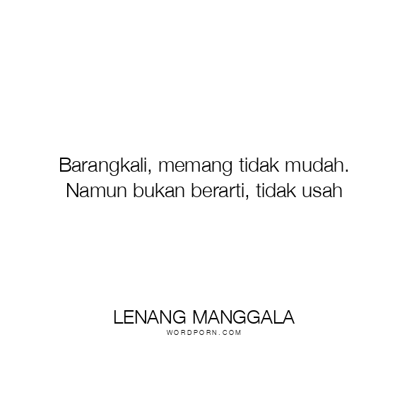 Barangkali, memang tidak mudah. Namun bukan berarti, tidak usah