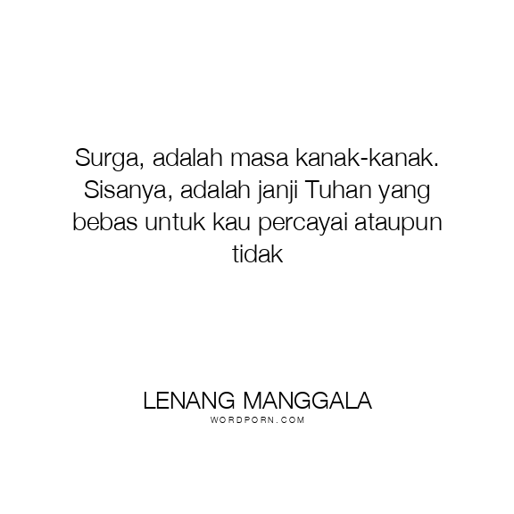 Surga, adalah masa kanak-kanak. Sisanya, adalah janji Tuhan yang bebas untuk kau percayai ataupun tidak