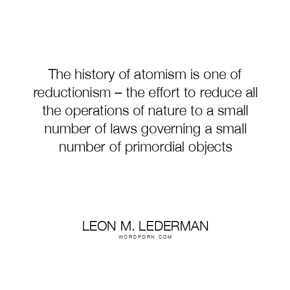 The history of atomism is one of reductionism – the effort to reduce all the operations of nature to a small number of laws governing a small number of primordial objects