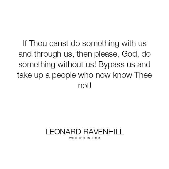 If Thou canst do something with us and through us, then please, God, do something without us! Bypass us and take up a people who now know Thee not!