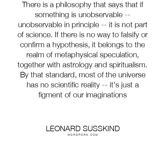 There is a philosophy that says that if something is unobservable -- unobservable in principle -- it is not part of science. If there is no way to falsify or confirm a hypothesis, it belongs to the realm of metaphysical speculation, together with astrology and spiritualism. By that standard, most of the universe has no scientific reality -- it's just a figment of our imaginations