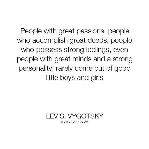 People with great passions, people who accomplish great deeds, people who possess strong feelings, even people with great minds and a strong personality, rarely come out of good little boys and girls