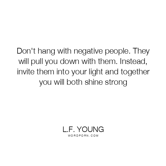 Don't hang with negative people. They will pull you down with them. Instead, invite them into your light and together you will both shine strong