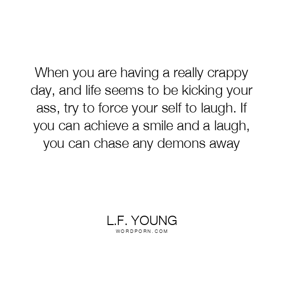 When you are having a really crappy day, and life seems to be kicking your ass, try to force your self to laugh. If you can achieve a smile and a laugh, you can chase any demons away