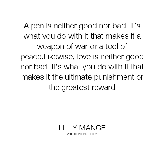 A pen is neither good nor bad. It’s what you do with it that makes it a weapon of war or a tool of peace.Likewise, love is neither good nor bad. It’s what you do with it that makes it the ultimate punishment or the greatest reward