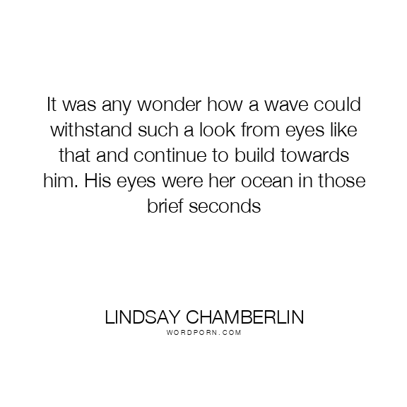 It was any wonder how a wave could withstand such a look from eyes like that and continue to build towards him. His eyes were her ocean in those brief seconds
