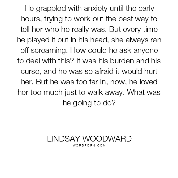 He grappled with anxiety until the early hours, trying to work out the best way to tell her who he really was. But every time he played it out in his head, she always ran off screaming. How could he ask anyone to deal with this? It was his burden and his curse, and he was so afraid it would hurt her. But he was too far in, now, he loved her too much just to walk away. What was he going to do?