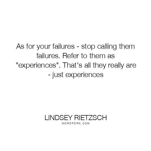 As for your failures - stop calling them failures. Refer to them as "experiences". That's all they really are - just experiences
