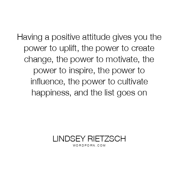 Having a positive attitude gives you the power to uplift, the power to create change, the power to motivate, the power to inspire, the power to influence, the power to cultivate happiness, and the list goes on