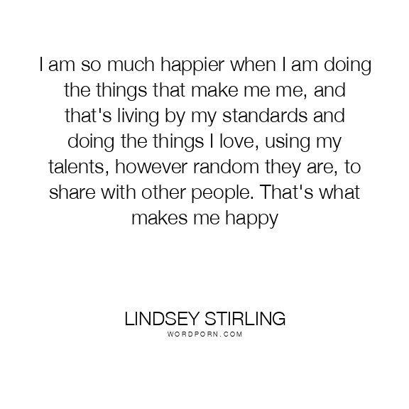 I am so much happier when I am doing the things that make me me, and that's living by my standards and doing the things I love, using my talents, however random they are, to share with other people. That's what makes me happy