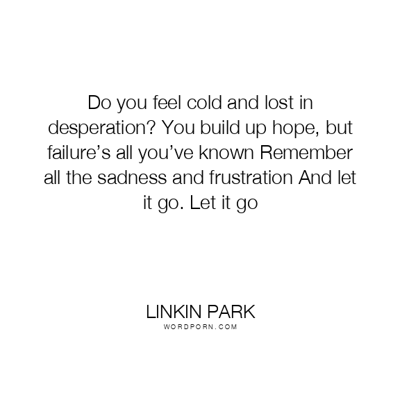 Do you feel cold and lost in desperation? You build up hope, but failure’s all you’ve known Remember all the sadness and frustration And let it go. Let it go