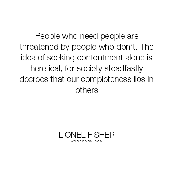 People who need people are threatened by people who don’t. The idea of seeking contentment alone is heretical, for society steadfastly decrees that our completeness lies in others