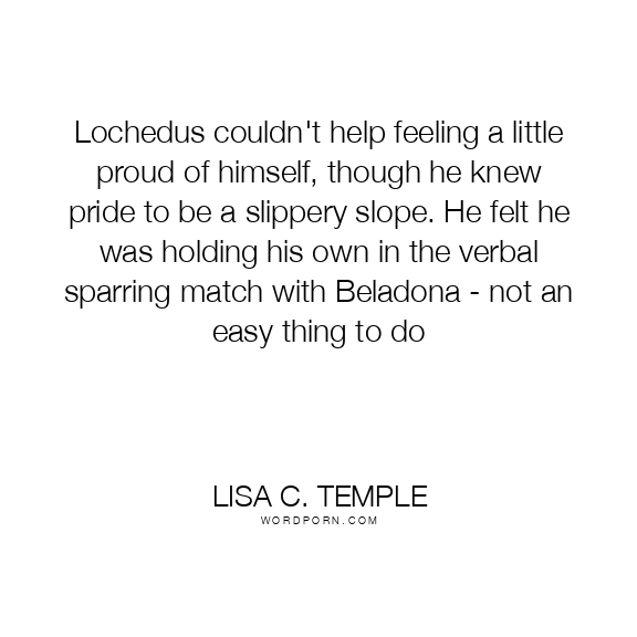 Lochedus couldn't help feeling a little proud of himself, though he knew pride to be a slippery slope. He felt he was holding his own in the verbal sparring match with Beladona - not an easy thing to do
