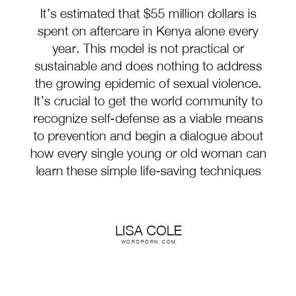 It’s estimated that $55 million dollars is spent on aftercare in Kenya alone every year. This model is not practical or sustainable and does nothing to address the growing epidemic of sexual violence. It’s crucial to get the world community to recognize self-defense as a viable means to prevention and begin a dialogue about how every single young or old woman can learn these simple life-saving techniques
