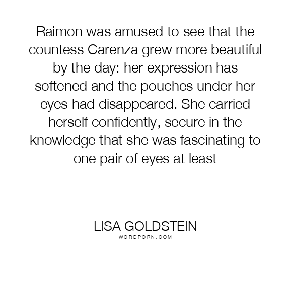 Raimon was amused to see that the countess Carenza grew more beautiful by the day: her expression has softened and the pouches under her eyes had disappeared. She carried herself confidently, secure in the knowledge that she was fascinating to one pair of eyes at least