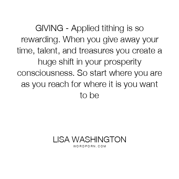 GIVING - Applied tithing is so rewarding. When you give away your time, talent, and treasures you create a huge shift in your prosperity consciousness. So start where you are as you reach for where it is you want to be