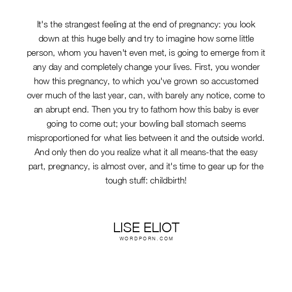 It's the strangest feeling at the end of pregnancy: you look down at this huge belly and try to imagine how some little person, whom you haven't even met, is going to emerge from it any day and completely change your lives. First, you wonder how this pregnancy, to which you've grown so accustomed over much of the last year, can, with barely any notice, come to an abrupt end. Then you try to fathom how this baby is ever going to come out; your bowling ball stomach seems misproportioned for what lies between it and the outside world. And only then do you realize what it all means-that the easy part, pregnancy, is almost over, and it's time to gear up for the tough stuff: childbirth!