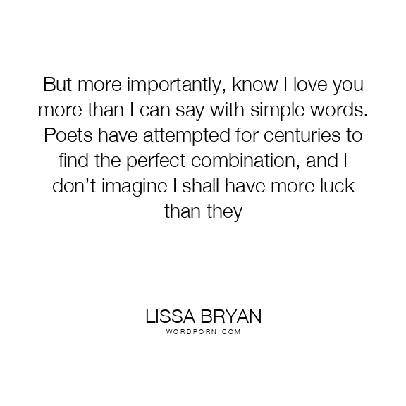 But more importantly, know I love you more than I can say with simple words. Poets have attempted for centuries to find the perfect combination, and I don’t imagine I shall have more luck than they