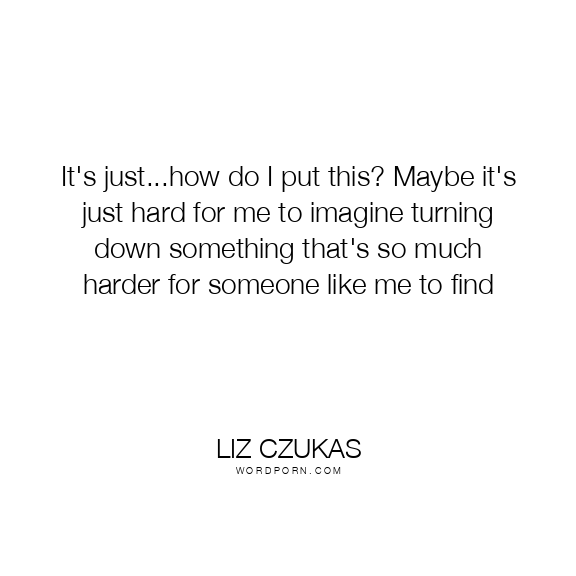 It's just...how do I put this? Maybe it's just hard for me to imagine turning down something that's so much harder for someone like me to find