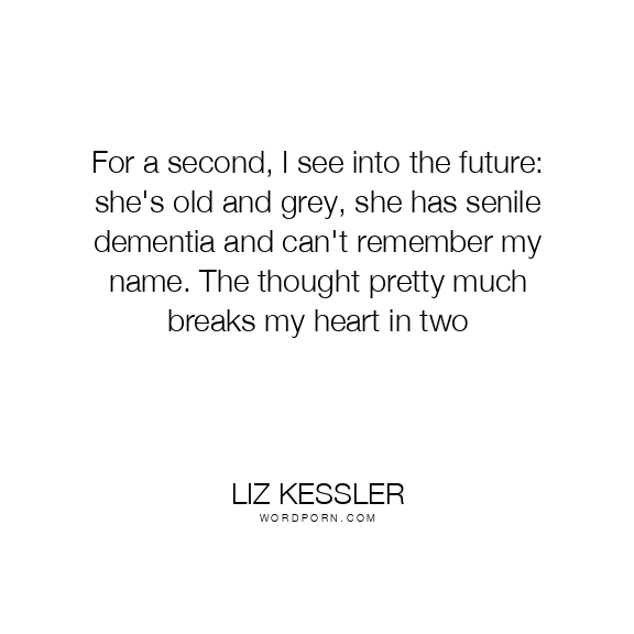 For a second, I see into the future: she's old and grey, she has senile dementia and can't remember my name. The thought pretty much breaks my heart in two