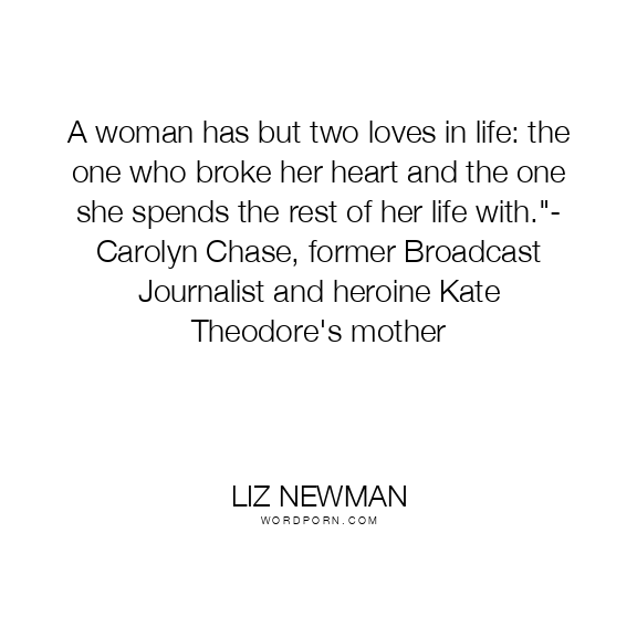 A woman has but two loves in life: the one who broke her heart and the one she spends the rest of her life with."- Carolyn Chase, former Broadcast Journalist and heroine Kate Theodore's mother