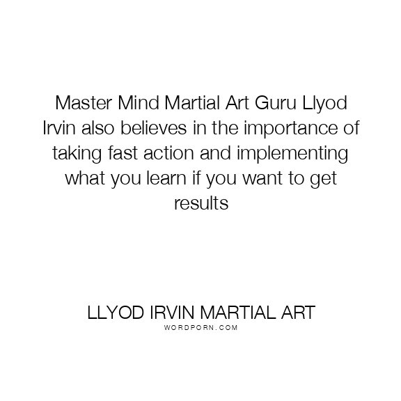 Master Mind Martial Art Guru Llyod Irvin also believes in the importance of taking fast action and implementing what you learn if you want to get results