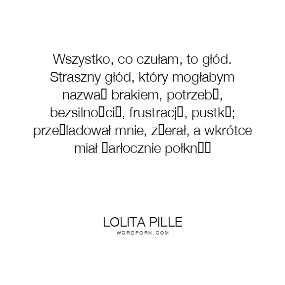 Wszystko, co czułam, to głód. Straszny głód, który mogłabym nazwać brakiem, potrzebą, bezsilnością, frustracją, pustką; prześladował mnie, zżerał, a wkrótce miał żarłocznie połknąć