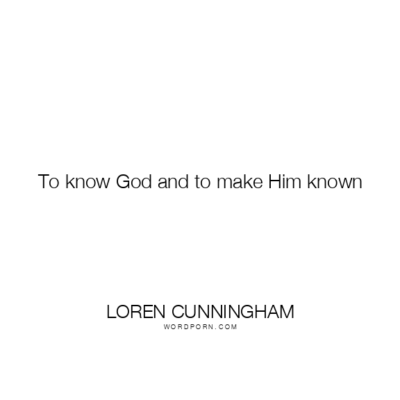 To know God and to make Him known