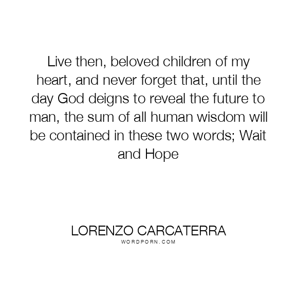 Live then, beloved children of my heart, and never forget that, until the day God deigns to reveal the future to man, the sum of all human wisdom will be contained in these two words; Wait and Hope