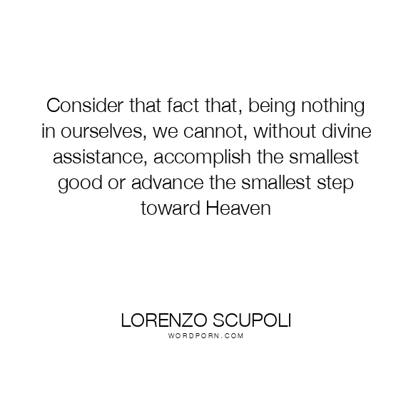 Consider that fact that, being nothing in ourselves, we cannot, without divine assistance, accomplish the smallest good or advance the smallest step toward Heaven