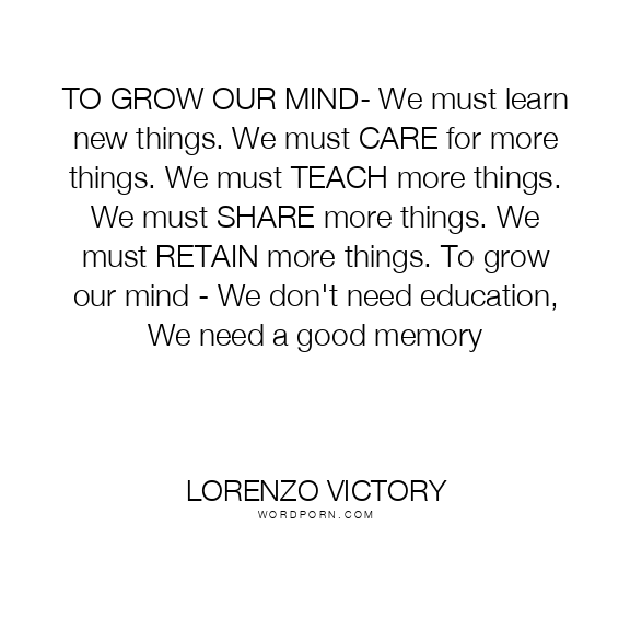 TO GROW OUR MIND- We must learn new things. We must CARE for more things. We must TEACH more things. We must SHARE more things. We must RETAIN more things. To grow our mind - We don't need education, We need a good memory
