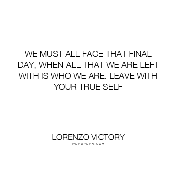 WE MUST ALL FACE THAT FINAL DAY, WHEN ALL THAT WE ARE LEFT WITH IS WHO WE ARE. LEAVE WITH YOUR TRUE SELF